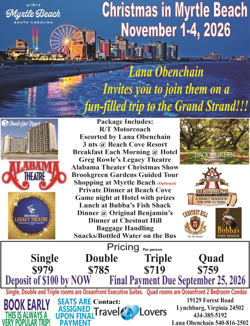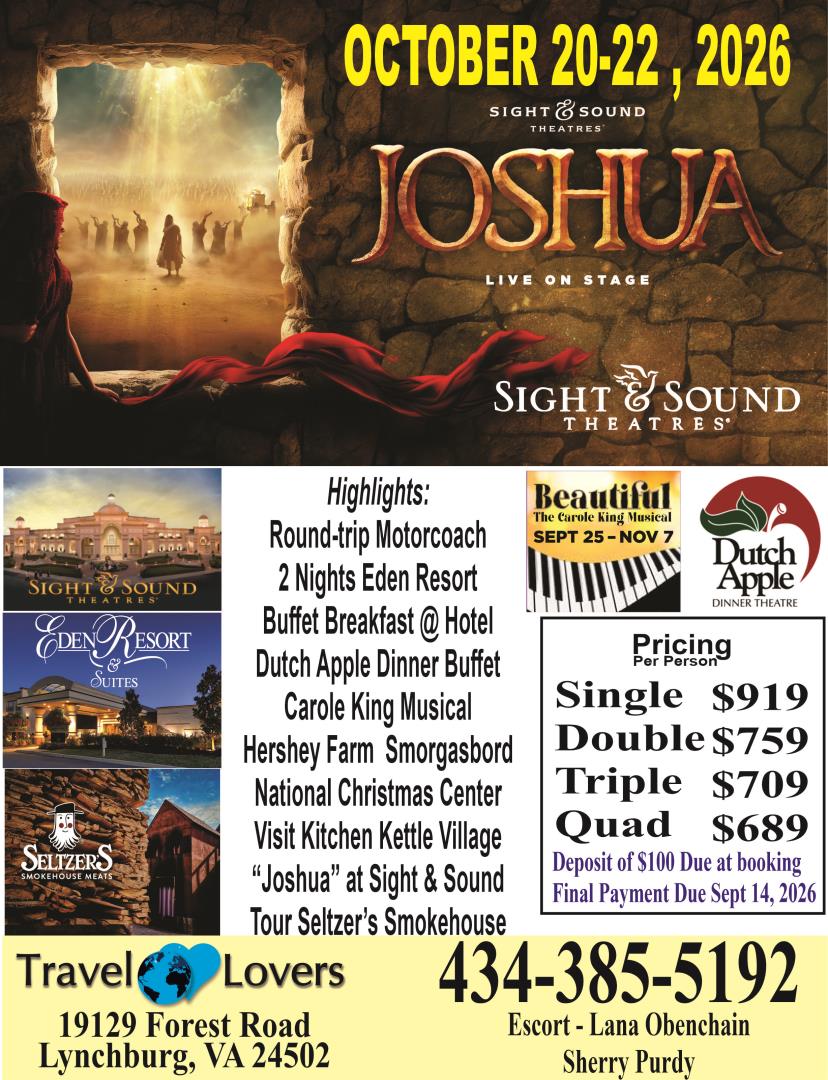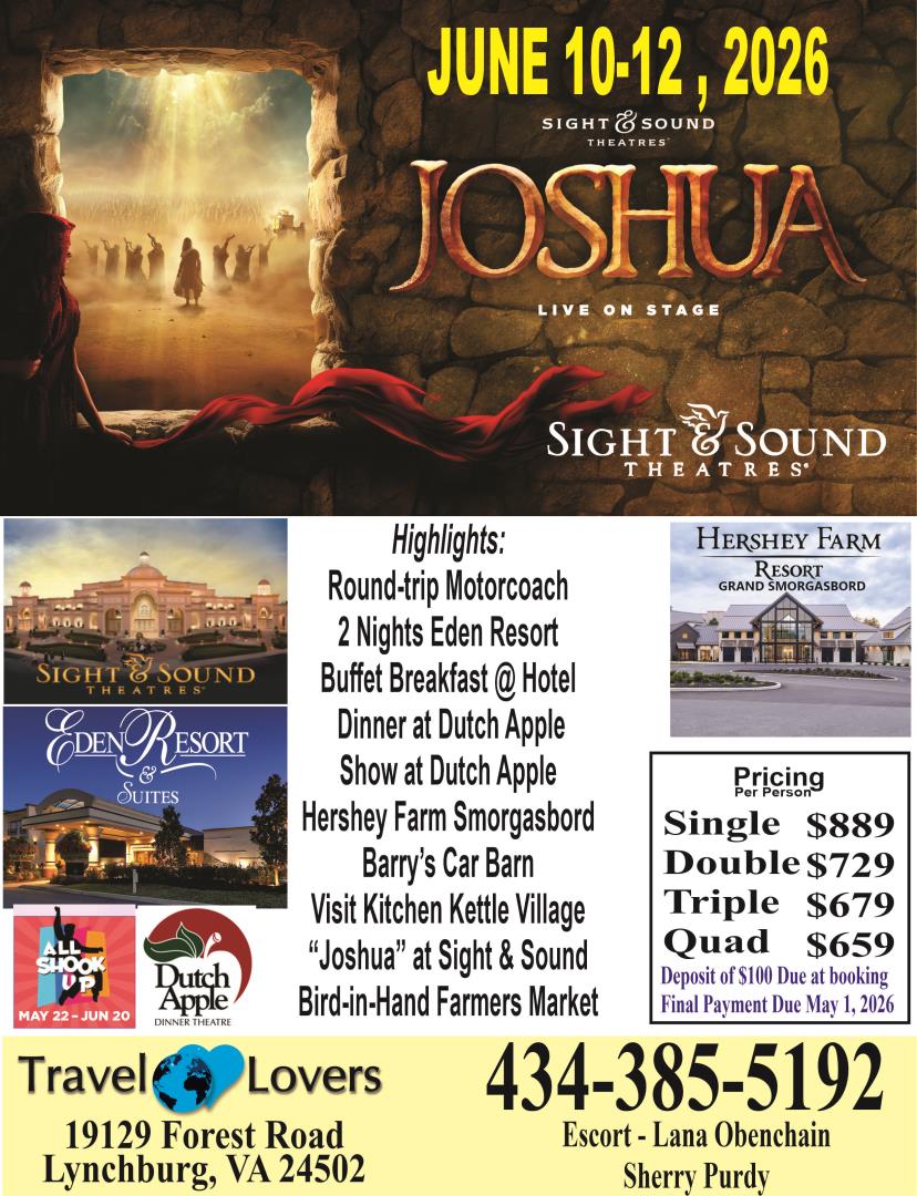 Give us a call about your travel desires, and we'll make your next group destination a getaway you won't forget! (434) 385-5192