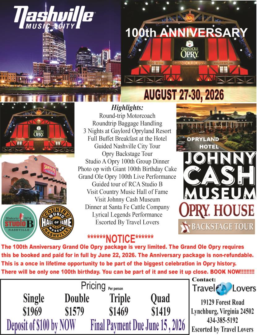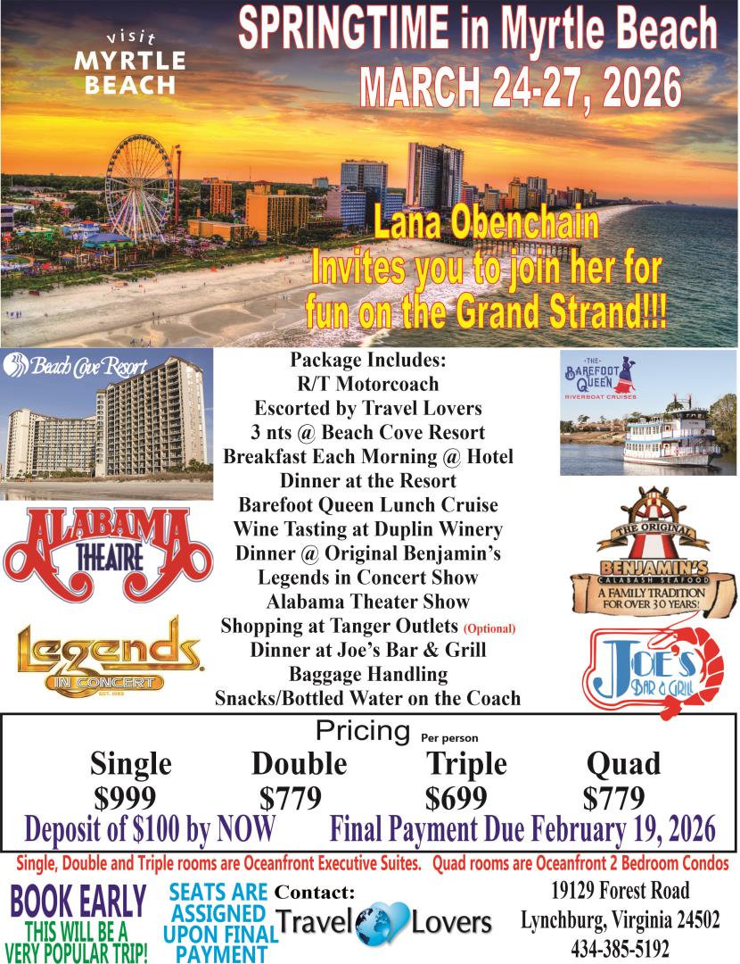 Give us a call about your travel desires, and we'll make your next group destination a getaway you won't forget! (434) 385-5192